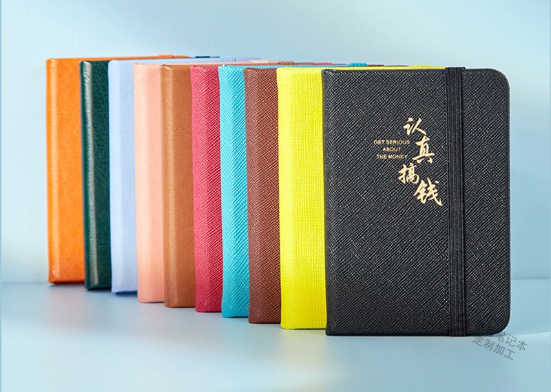 PU革松緊帶平裝工作日記本設計燙金案例